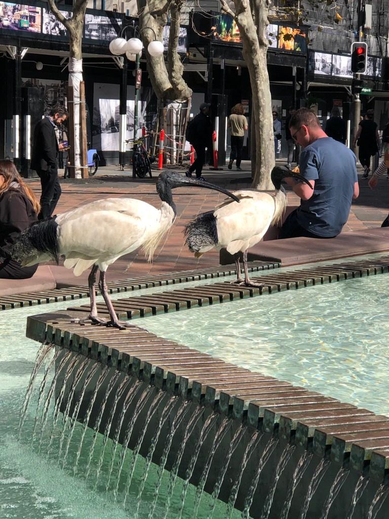 Dieser nennt sich Australischer Ibis und läuft einer/m tatsächlich auf dem Bürgersteig zwischen den Füßen herum. Obwohl es in Sydney ungleich wärmer als in Auckland ist, kleiden sich die meisten Leute so, wie es unserem Kalt-Wärme-Empfinden entspricht. Wir konnten noch keine Flip-Flop-Träger:innen entdecken.