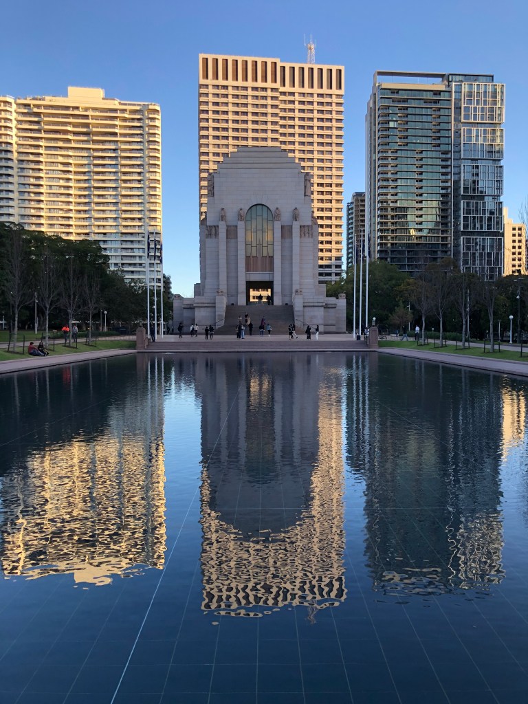 Um die Ecke gibt es ein jüdisches Museum, das sich mit jüdischem Leben in der Kriegszeit und in Australien beschäftigt und eine Erinnerungskultur wachhalten möchte. Gegenüber im Park steht dieses Monument für die lesbischen und schwulen bzw. queeren Opfer des Holocaust.