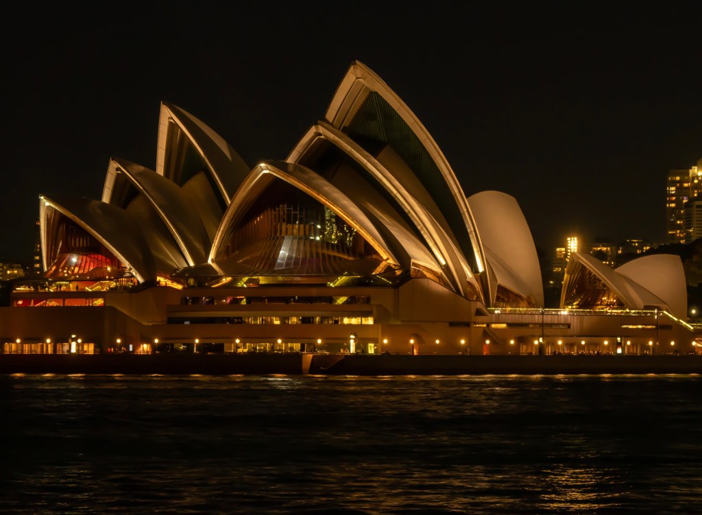 Und um den Tag gänzlich abzurunden, haben wir noch eine Fähre genommen, um im Sydney Harbour nach Sonnenuntergang an der Harbour Bridge und dem berühmten Sydney Opernhaus vorbeizugleiten.